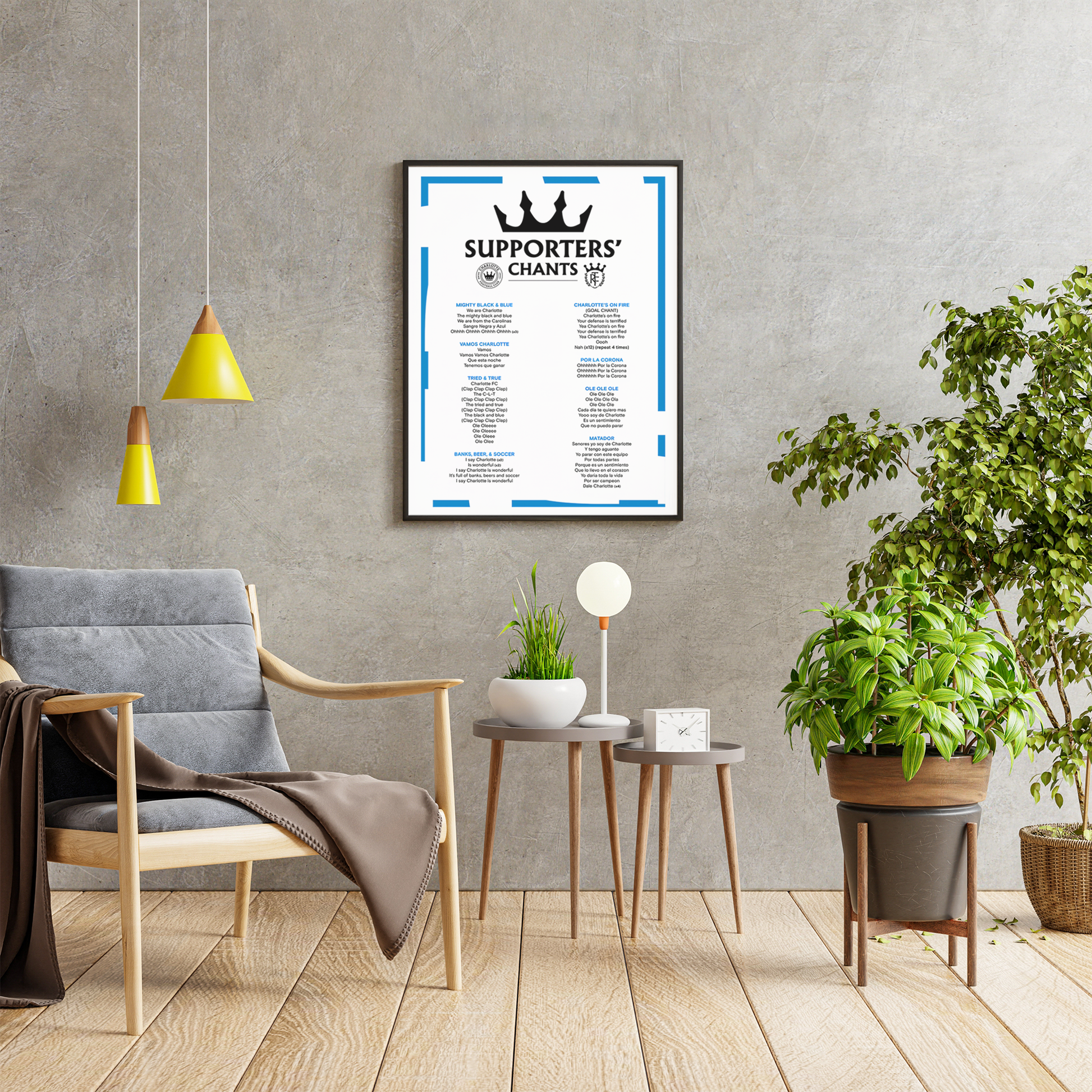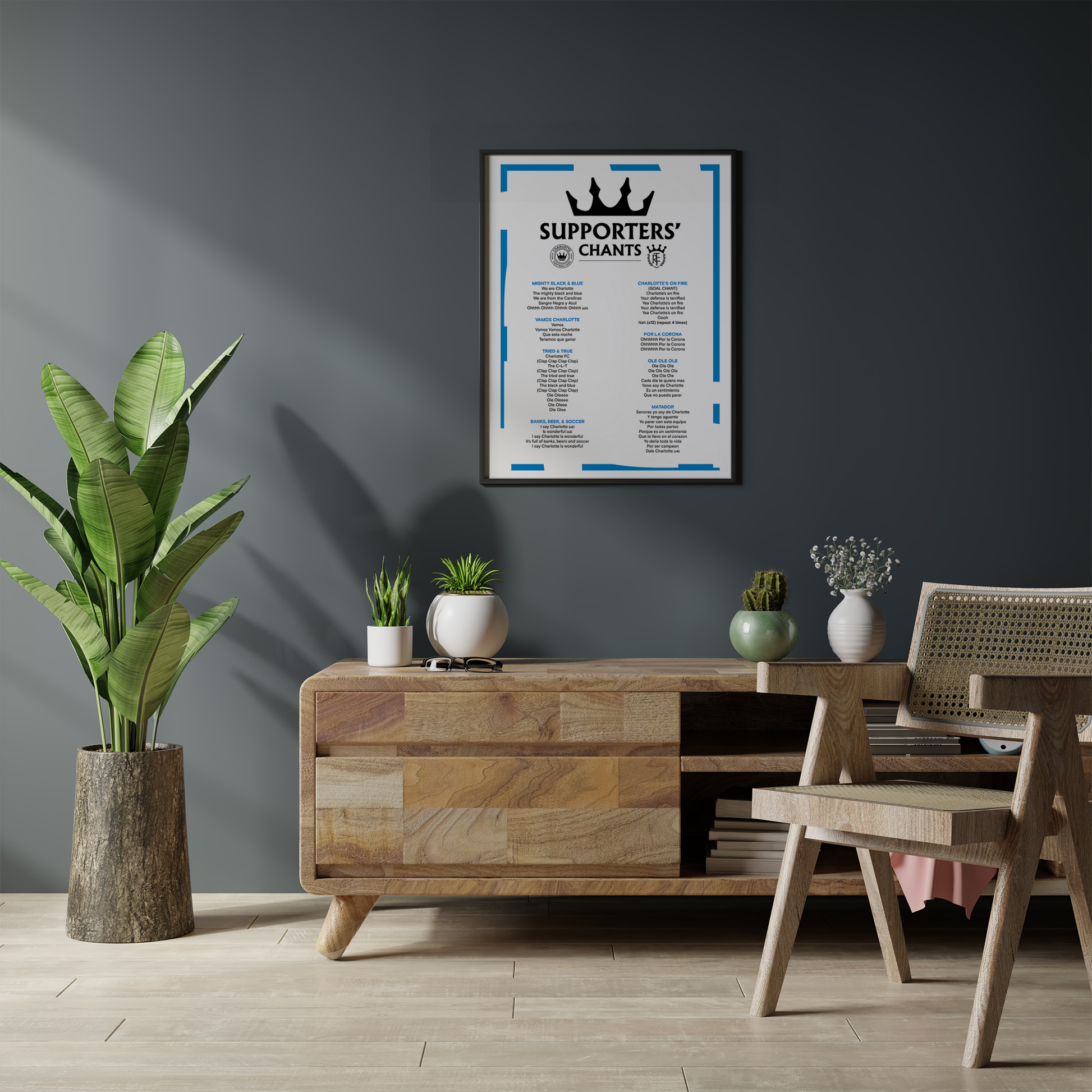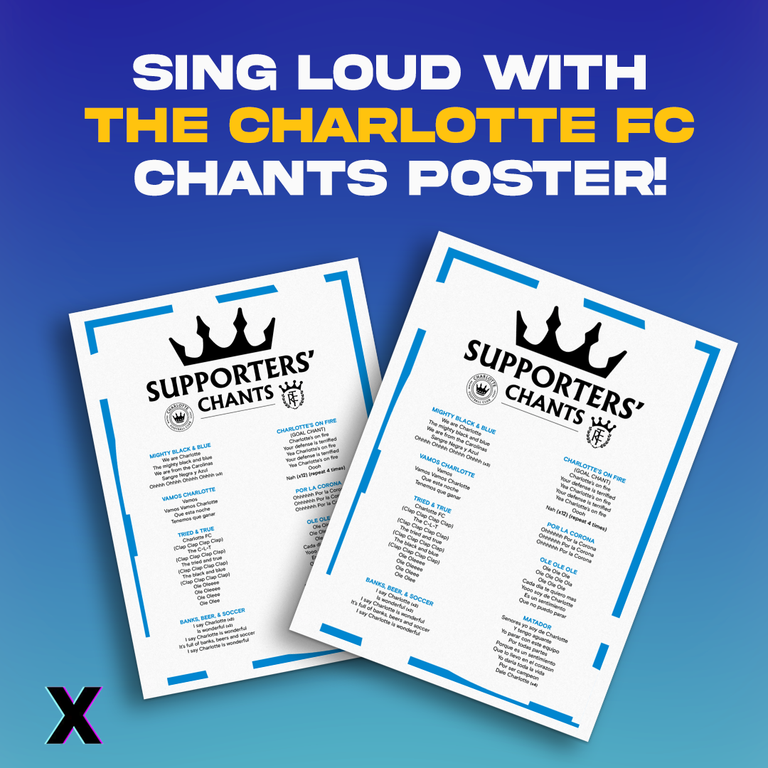 Get ready to elevate your game-day experience with the Charlotte FC Supporter Chants poster! Perfect for any dedicated fan, this vibrant poster features a collection of the most iconic and spirited chants that fill the stadium with energy and unity. From the mighty "Black & Blue" anthem to the fiery "Charlotte's On Fire" goal chant, this poster captures the essence of the Charlotte FC fan culture.